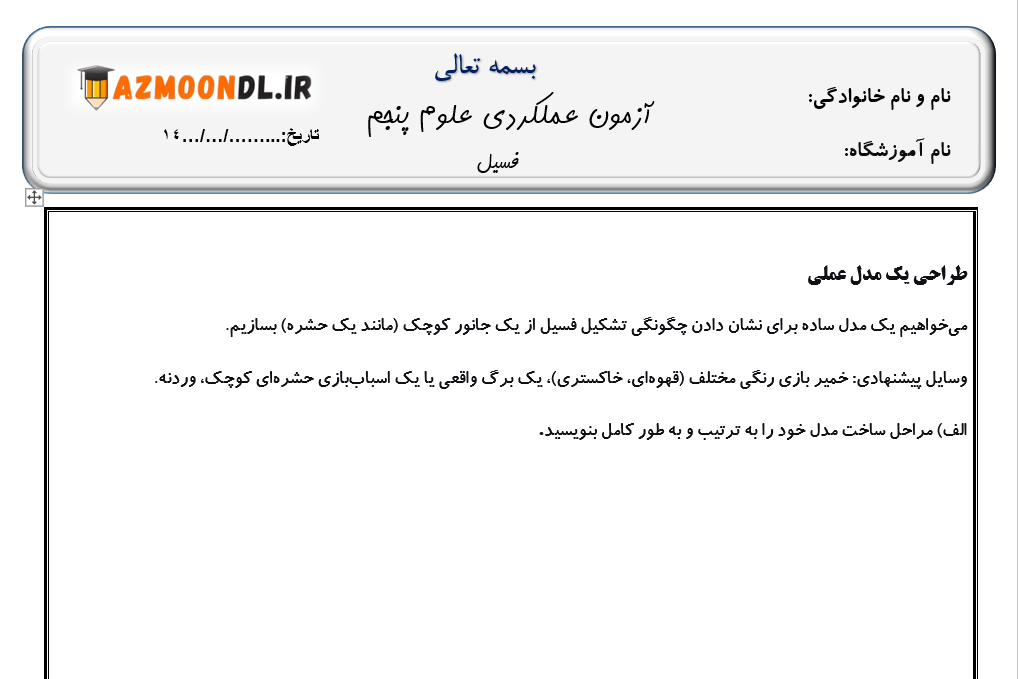 آزمون عملکردی درس فسیل علوم پنجم دبستان – سری ۱ – به همراه پاسخنامه کامل